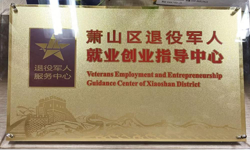 我司非常荣幸能成为萧山区首批“萧山区退役军人就业创业指导中心”,为退役军人就业创业提供帮扶、培训、指导。