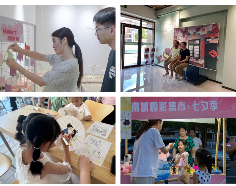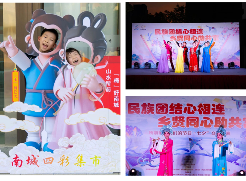 图片 8月2日至8月3日,在南城社区邻里中心,灯火通明,人声鼎沸,歌声、笑声、音乐声此起彼伏,交织成一曲社区和谐乐章。七夕将至,为进一步弘扬中华传统文化,丰富社区居民精神文化生活,引导广大居民树立正确的爱情观、家庭观,促进家庭和睦及社会和谐,我司策划并组织了所前镇南城社区开展了“南城四彩集市.七夕季”系列活动。