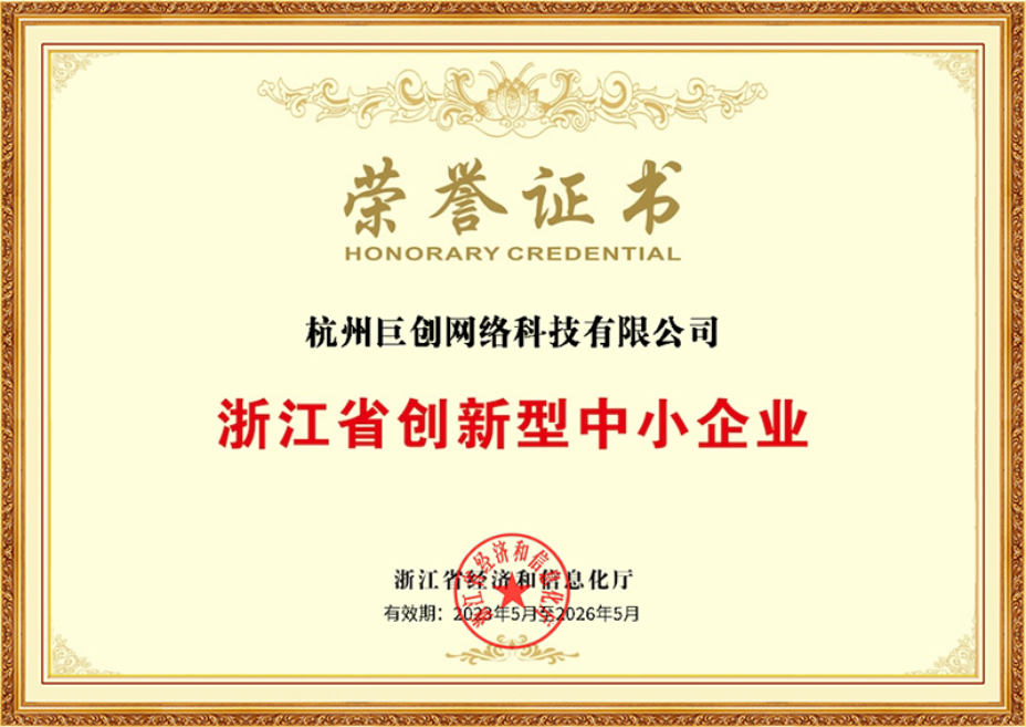 浙江省创新型中小企业证书