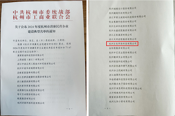 巨创科技荣获“2024年度杭州市清廉民营企业建设典型”